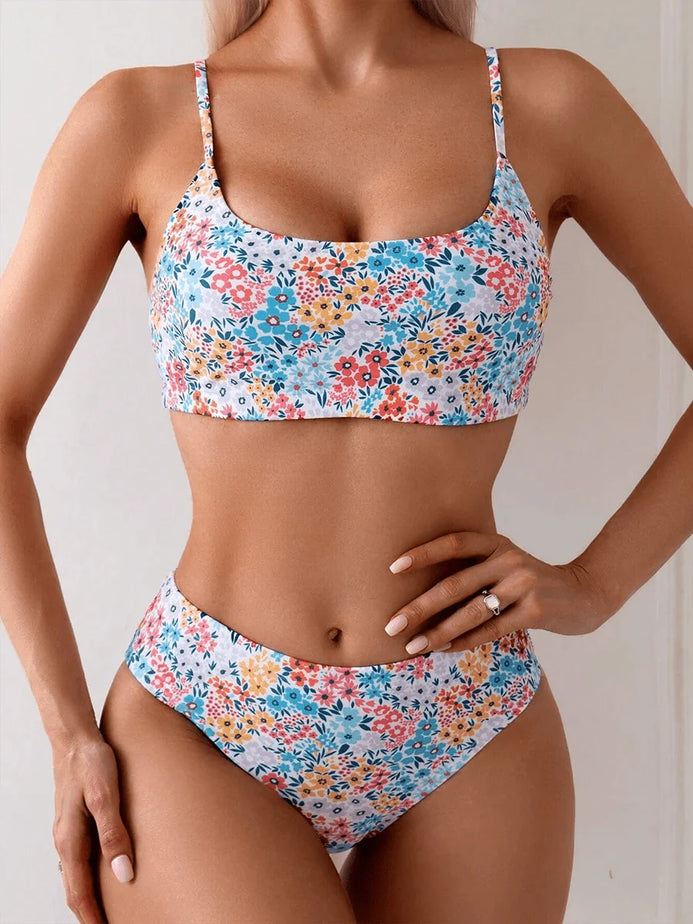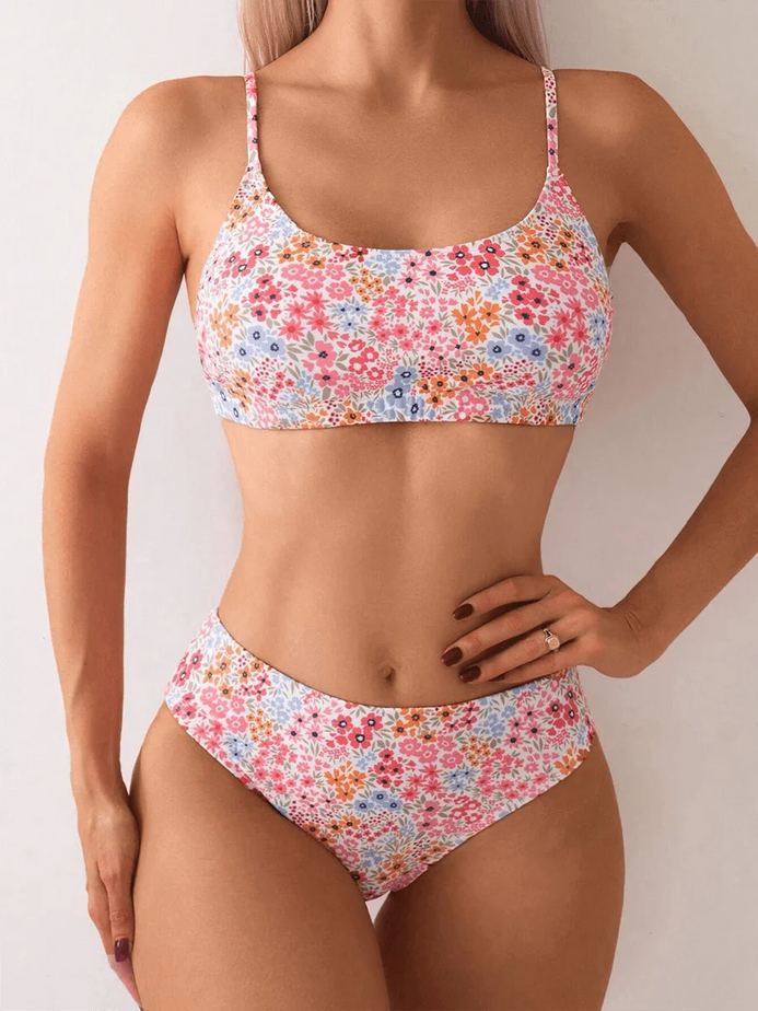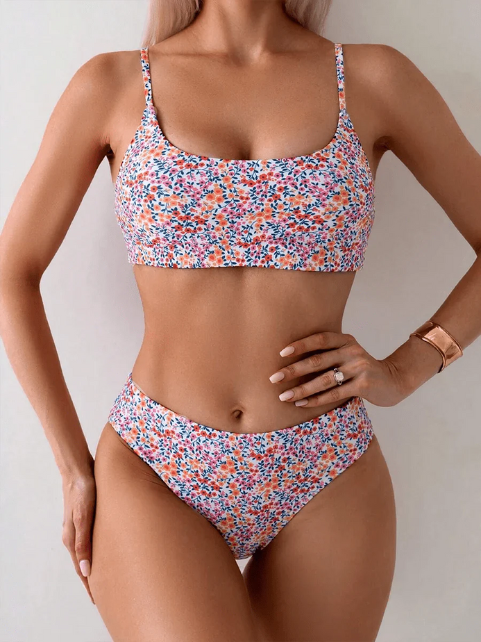 Biquíni Floral High Waist Camila – Elegância e Conforto no Verão